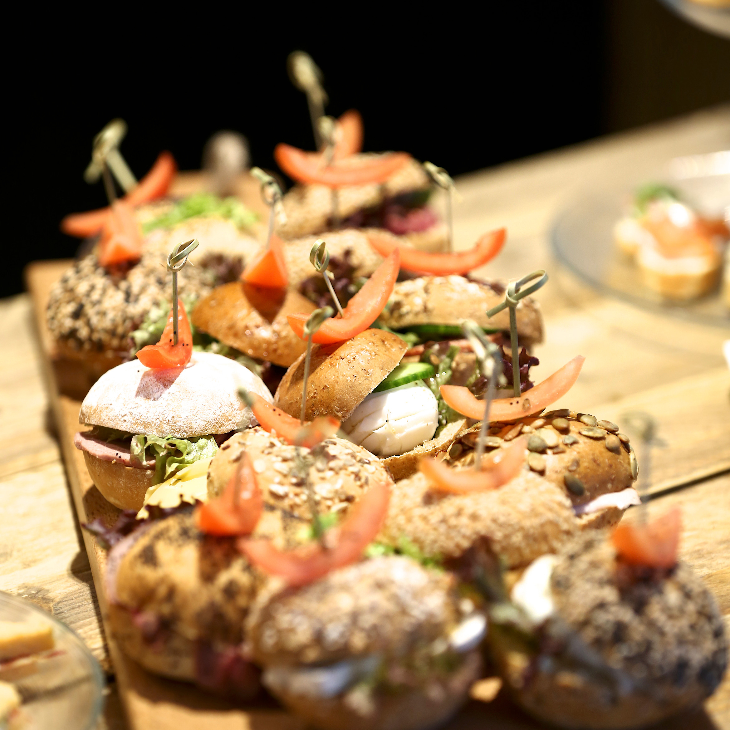 We serveren luxe belegde broodjes op schalen of etageres als bijvoorbeeld een lunch.