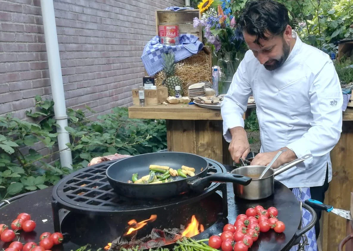BBQ op de Ofyr waarop de Chef Kok a la minute prachtige gerechten van vis, vlees, kip en verse groenten bereid.
